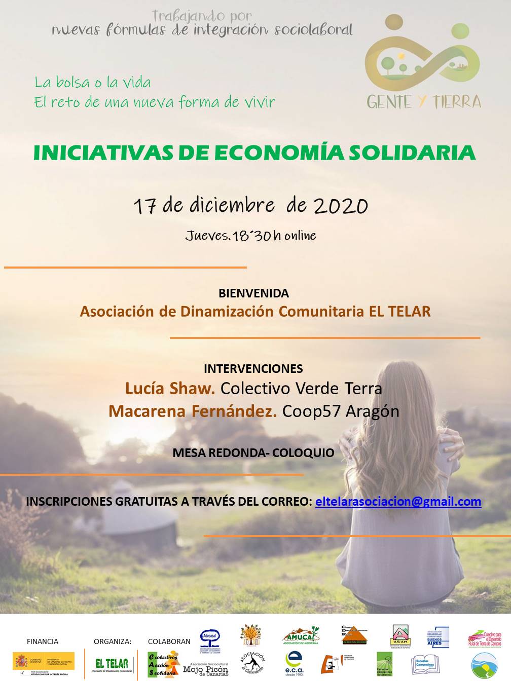 Dentro de las jornadas “La Bolsa o la vida” El reto de una nueva forma de vivir, organizadas por el programa Gente y Tierra de CAS (Colectivos de Acción Solidaria) la Asociación de dinamización comunitaria “El telar” organizamos una charla On-line sobre Iniciativas de economía solidaria. Para conocer experiencias que se desarrollan en las etapas del ciclo económico (producción , distribución, consumo, financiación) y ponen en el centro la vida.