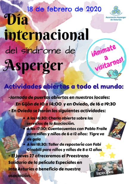 Desde la Asociación Asperger Asturias es un placer informaros de que hemos organizado dos eventos para visibilizar el Día Internacional del Síndrome de Asperger (18 de febrero). Esperamos que sean de vuestro agrado, y que podáis asistir a ambos.
