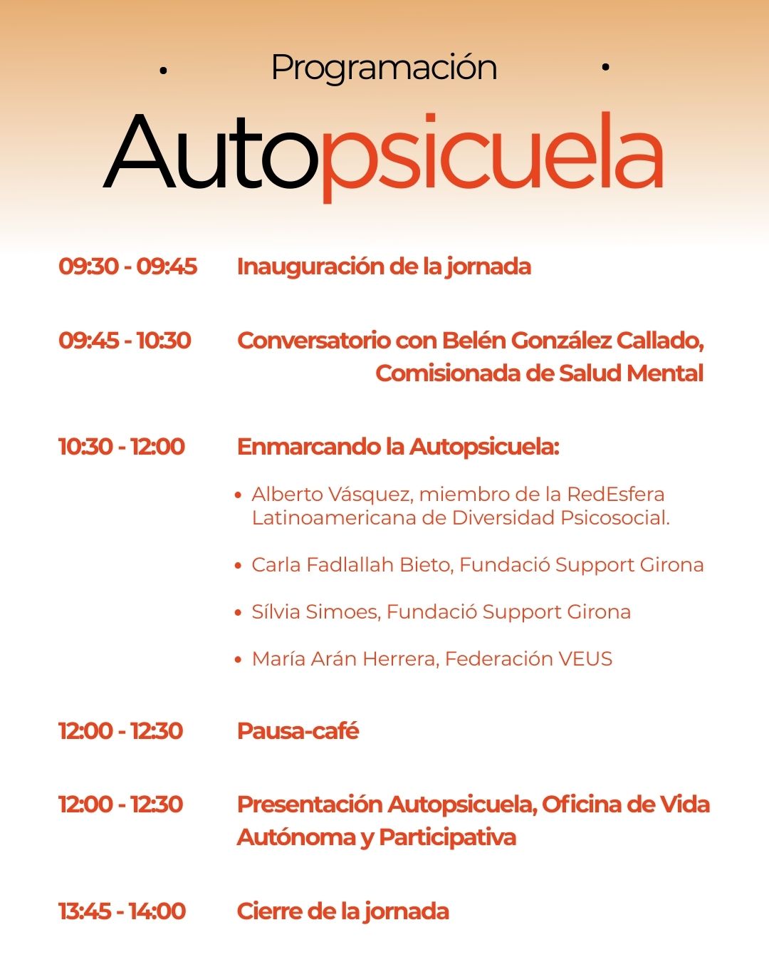 Jornada de Presentación de la Autopsicuela, Oficina de Vida Autónoma y Participativa para la Accesibilidad Psicosocial, un proyecto pionero en Accesibilidad Psicosocial que se celebrará el próximo jueves 25 de septiembre de 2025.