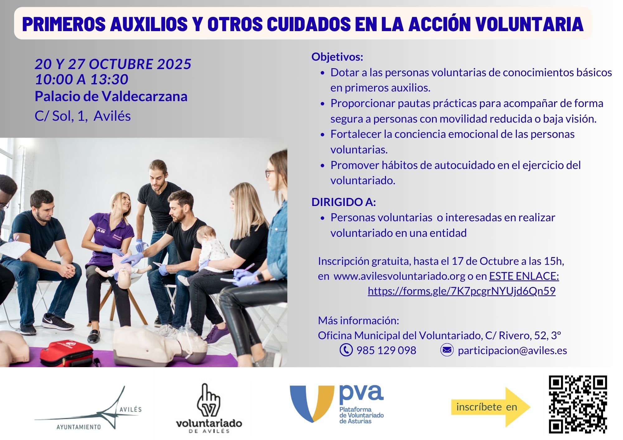 El curso, de carácter presencial, está organizado por la Concejalía de Participación Ciudadana del Ayuntamiento de Avilés, a través de la Oficina Municipal del Voluntariado, en colaboración con la Plataforma del Voluntariado de Asturias.